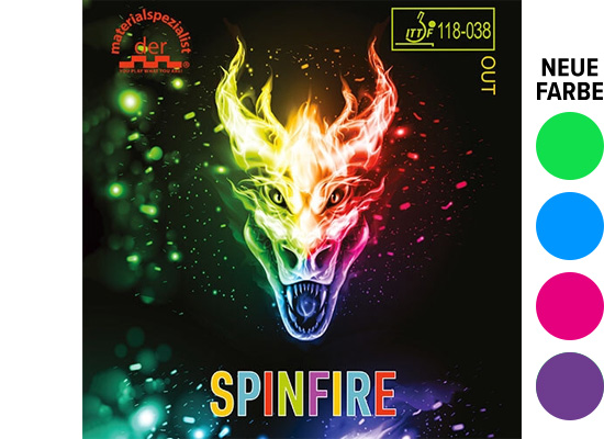 SPINFIRE: hohe Tempowerte mit massiver Eigenschnittentwicklung und flacher Ballflugbahn in kunterbunt.